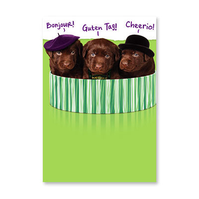 Front: "Bonjour!" "Guten Tag!" "Cheerio!"