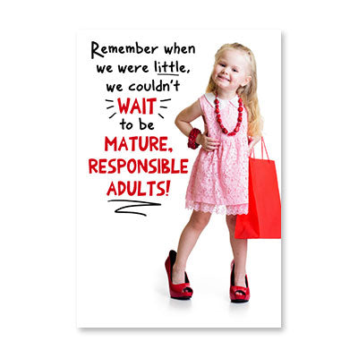 Front: Remember when we were little, we couldn't wait to be mature, responsible adults!