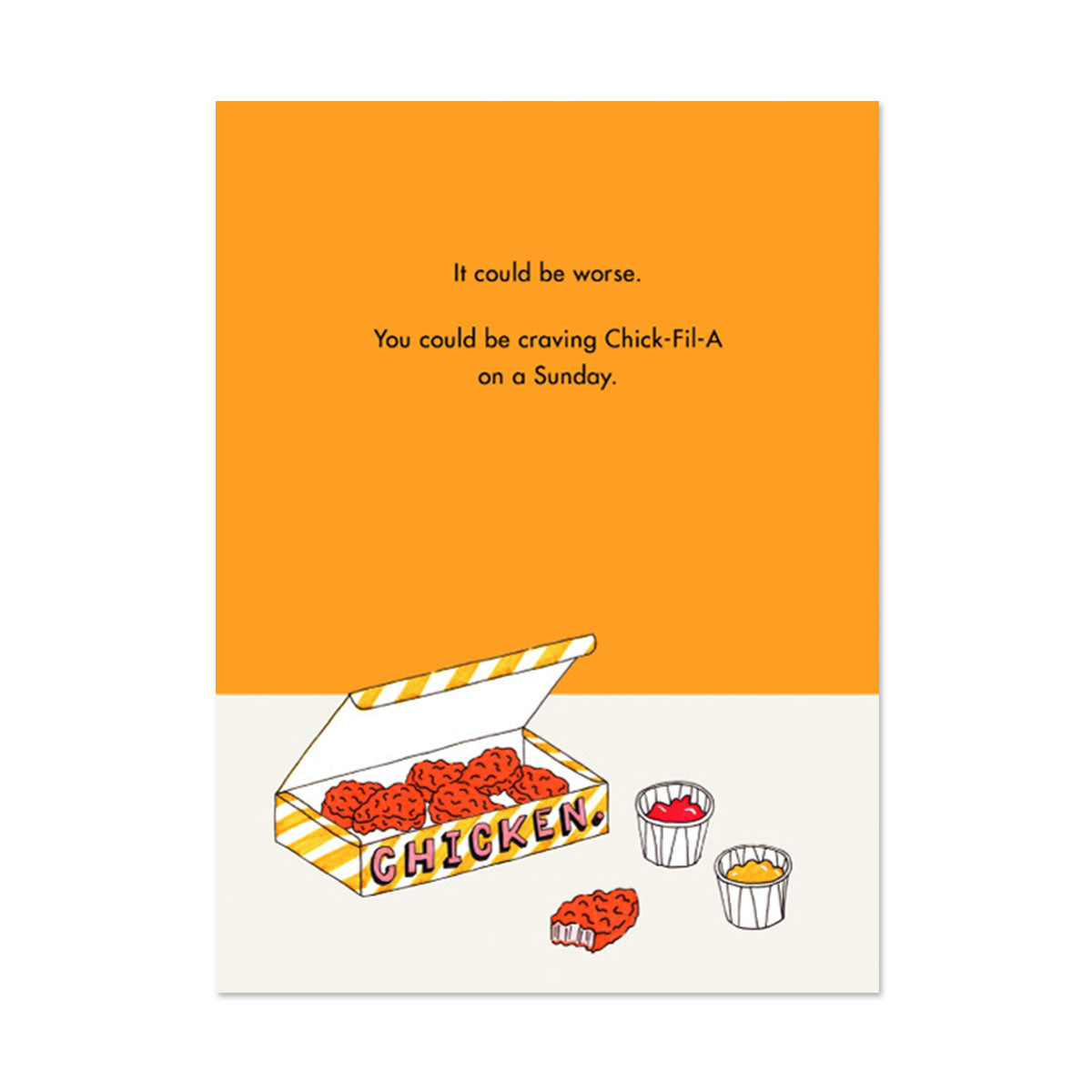 Front: It could be worse. You could be craving Chick-Fil-A on a Sunday.