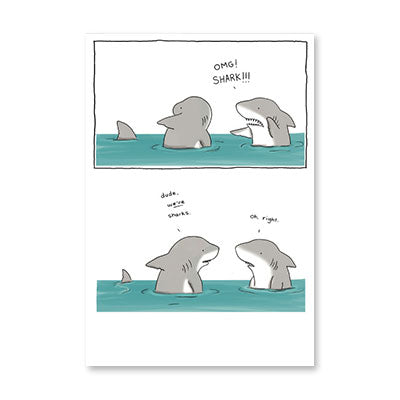 Front: "OMG! Shark!!!" "Dude, we're sharks." "Oh, right."