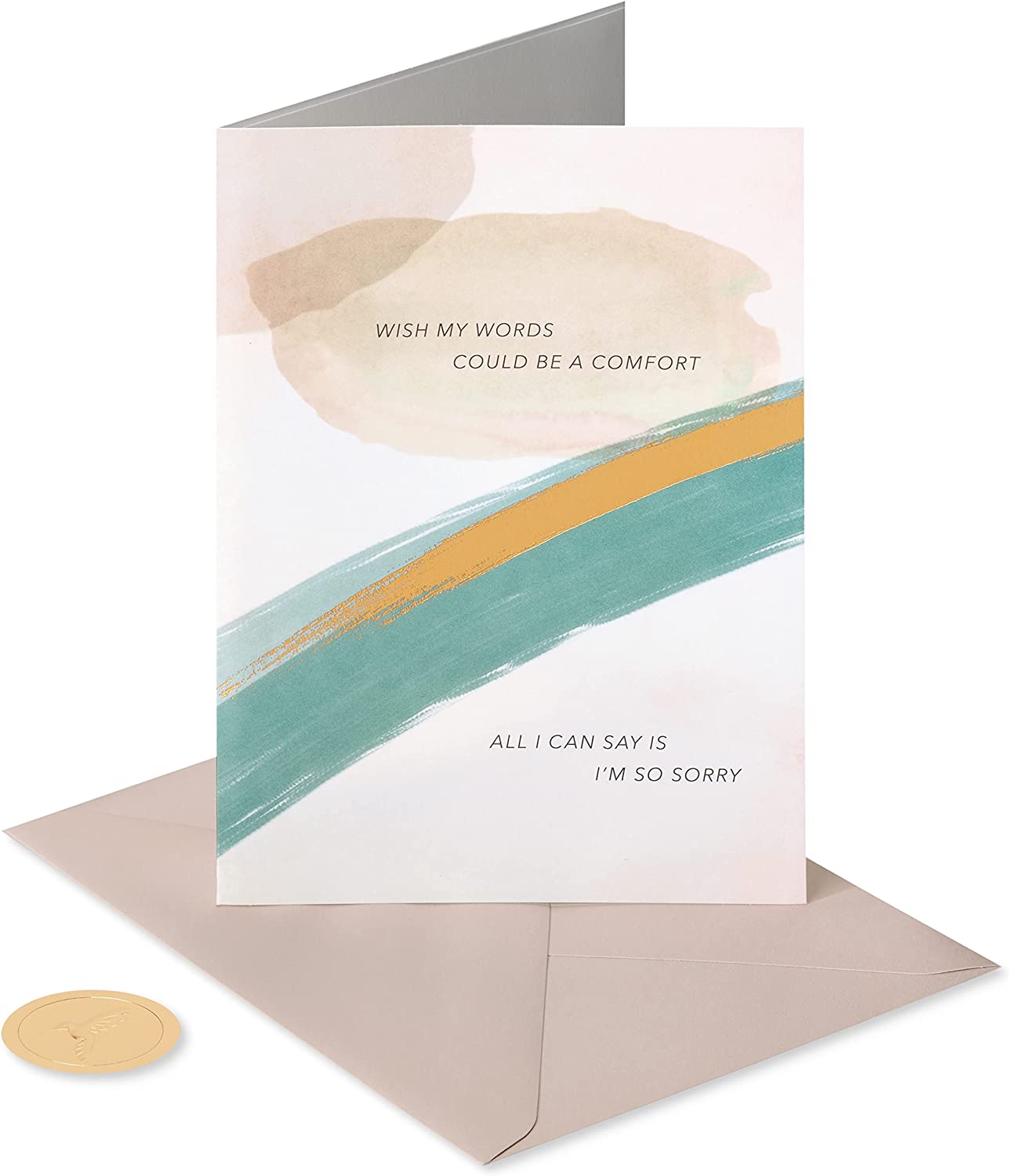 Send them some support during a difficult time with a sophisticated sympathy card from Papyrus. This beautiful card features heartfelt words of comfort on the outside, with brown and green accents as well as metallic foil embellishments and the inside is blank, so you can write your own personalized message. Give it to anyone in your life who's grieving the loss of someone they cared for. Envelope and gold foil seal are included.
