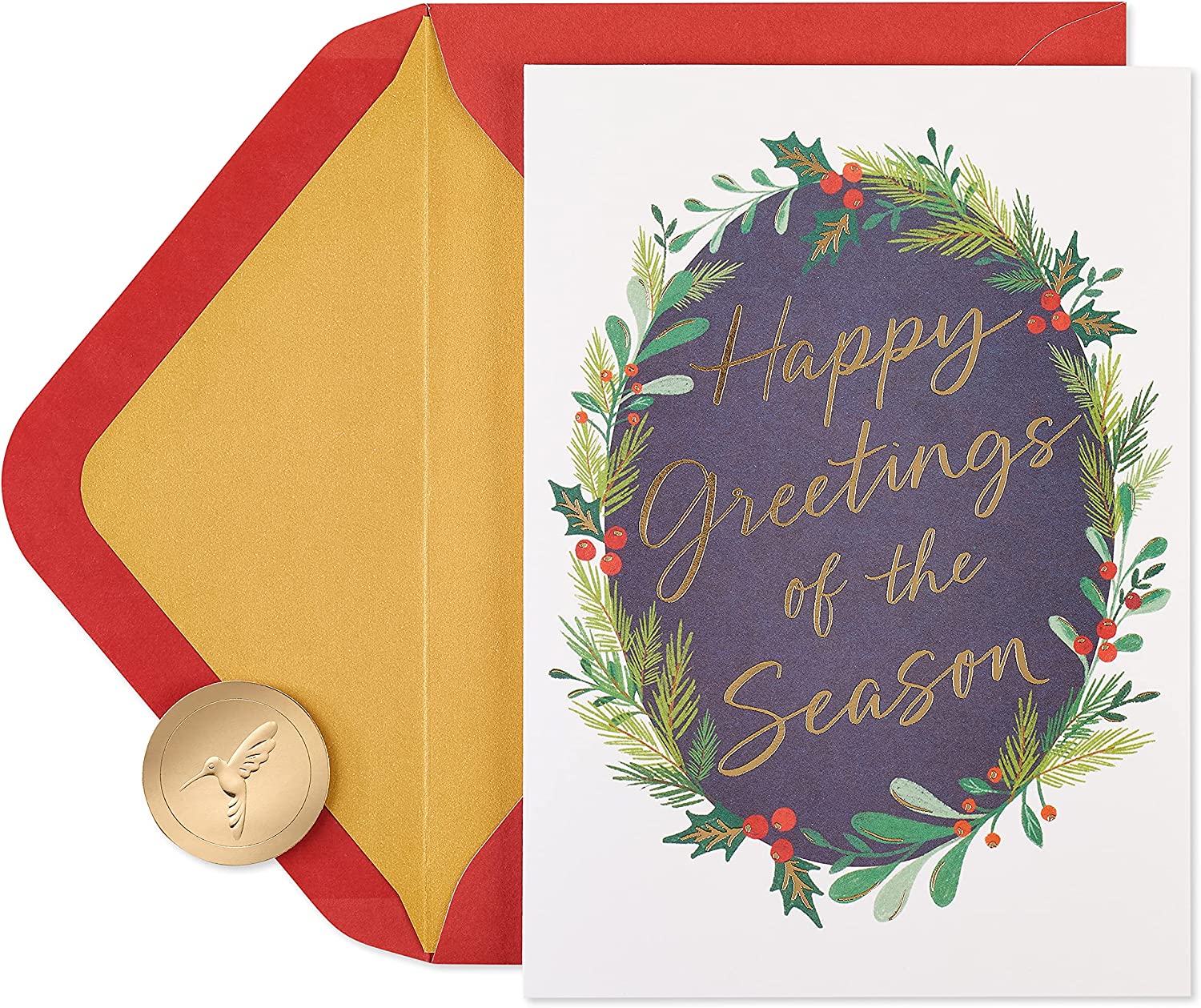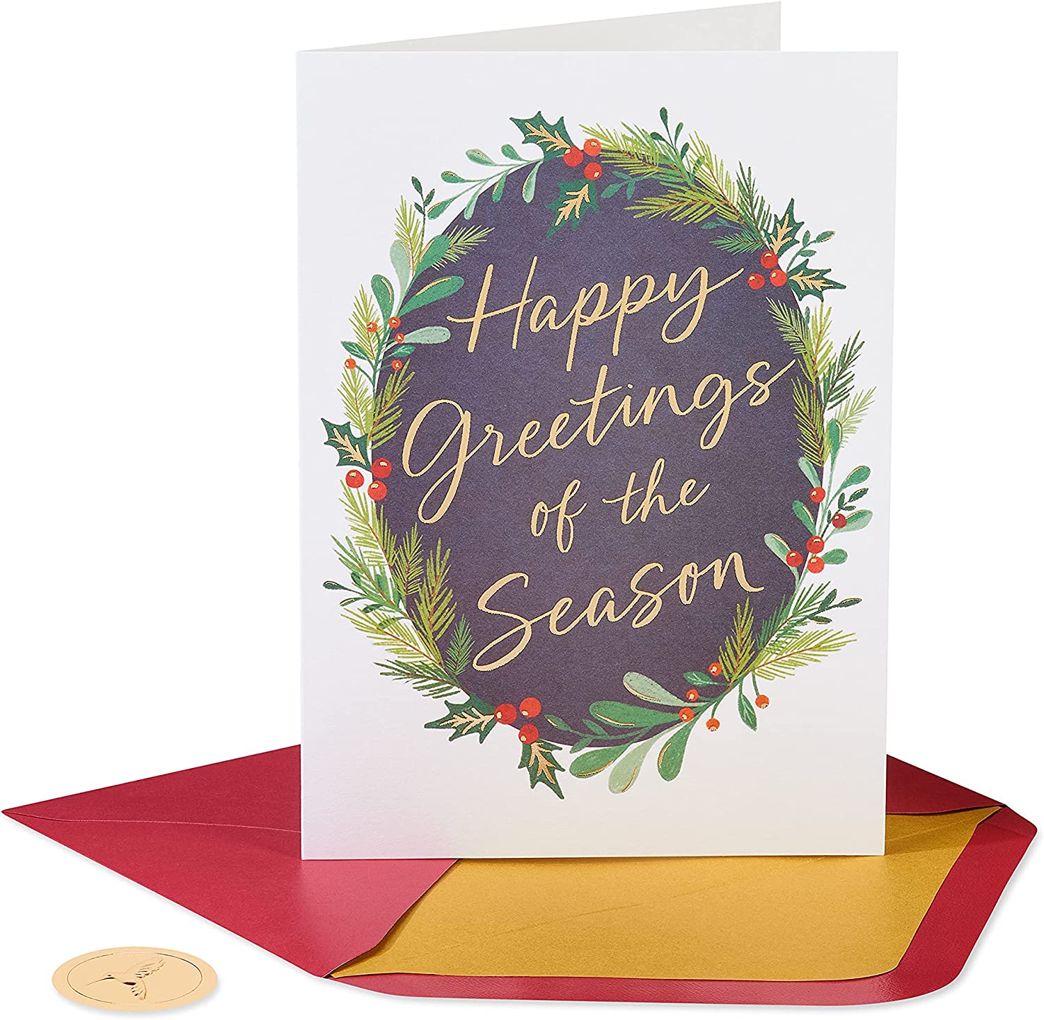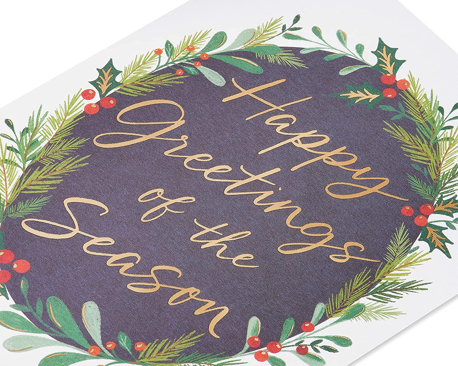 Send special greetings of the season with a box of holiday cards from Papyrus. This set of 14 cards comes complete with 14 lined envelopes and 16 gold seals to send to family members, friends, coworkers, neighbors, clients, teachers - anyone who's in your heart this winter. Each card features a chalkboard-inspired lettering design surrounded by an oval wreath of winter foliage with metallic foil embellishment. The message is open to people of any faith and offers a simple wish for today and always. A card from Papyrus is a beautiful way to celebrate the season.