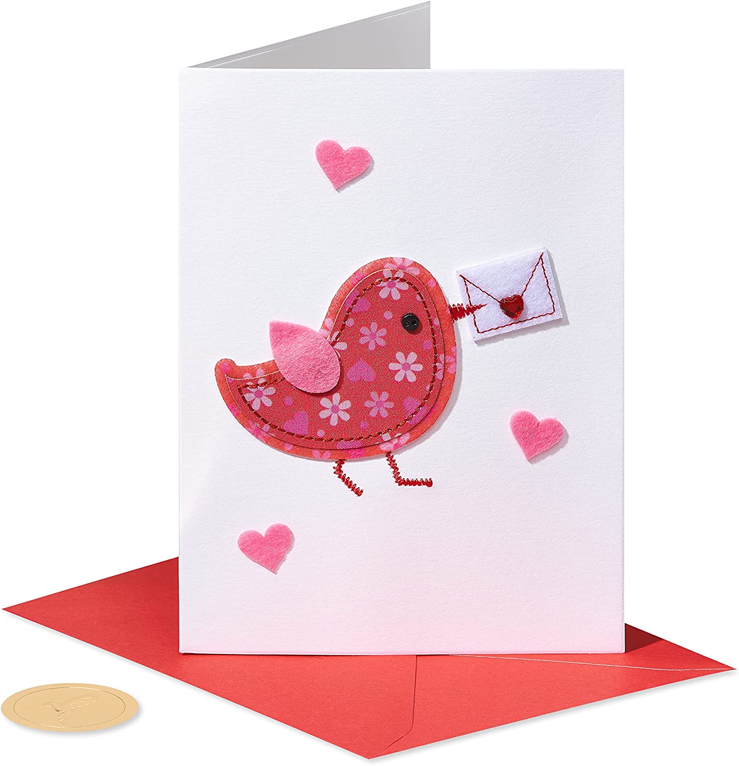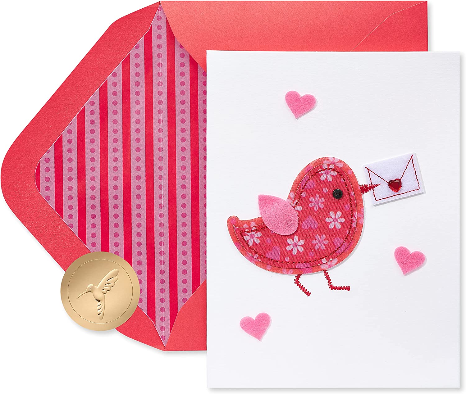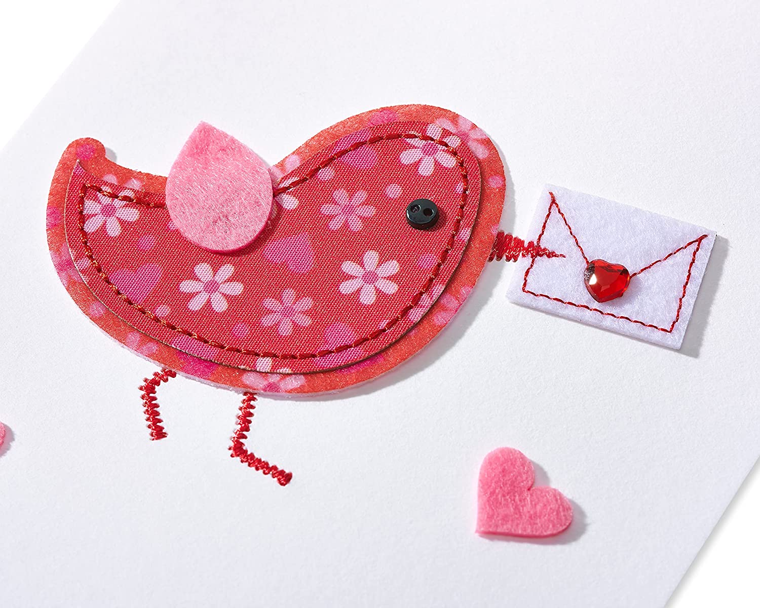 Make your mom's heart happy this Valentine's Day! This handcrafted greeting card by Lily Pad Press features dimensional attachments like decorated foam, an acrylic tip-on, pink gauze ribbons and paper birds, as well as shimmering gold foil and sparkling glitter. A bright pink envelope printed with a gold foil heart makes it even more special. It's the perfect way to show her love and appreciation!