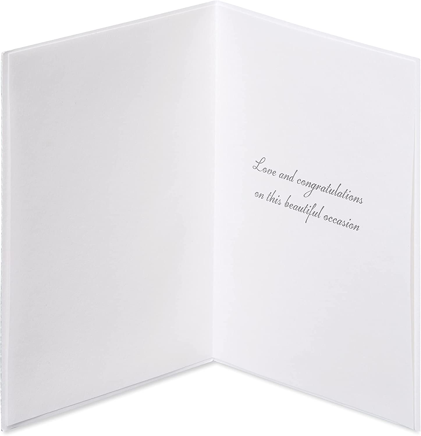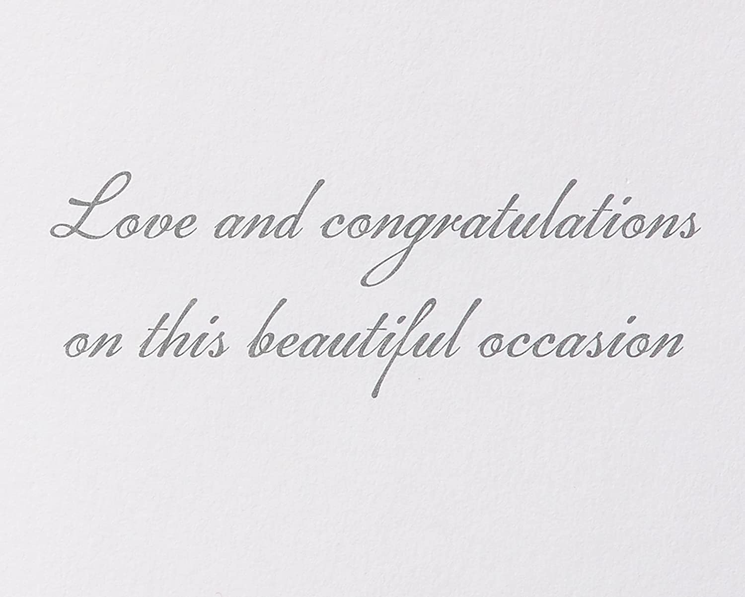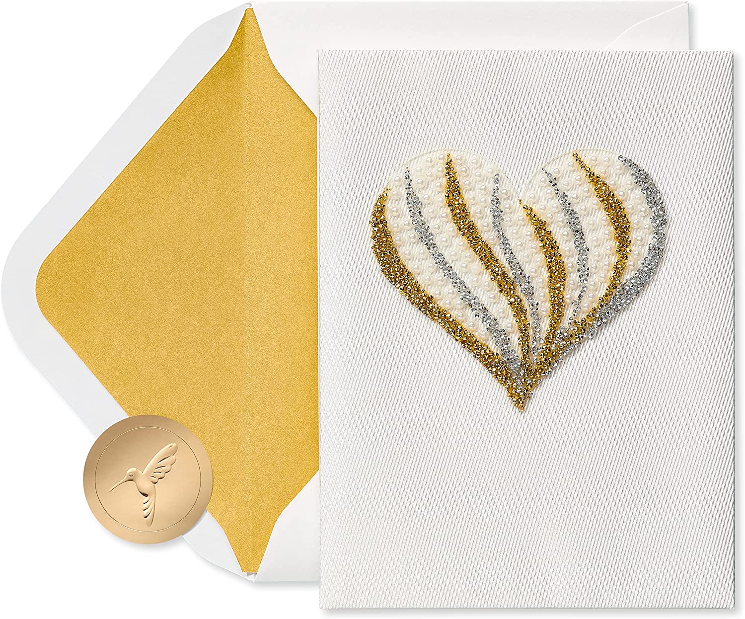 Send some love to the happy couple with this elegant wedding card exclusively from Papyrus. Created in collaboration with designer Lori Weitzner, this beautiful card features a heart design made with appliqué and acrylic on the outside and a simple message of love and congratulations on the inside. There's also plenty of room to write your own personalized note. A quality envelope and classic gold foil Papyrus seal are also included. Extra postage required.
